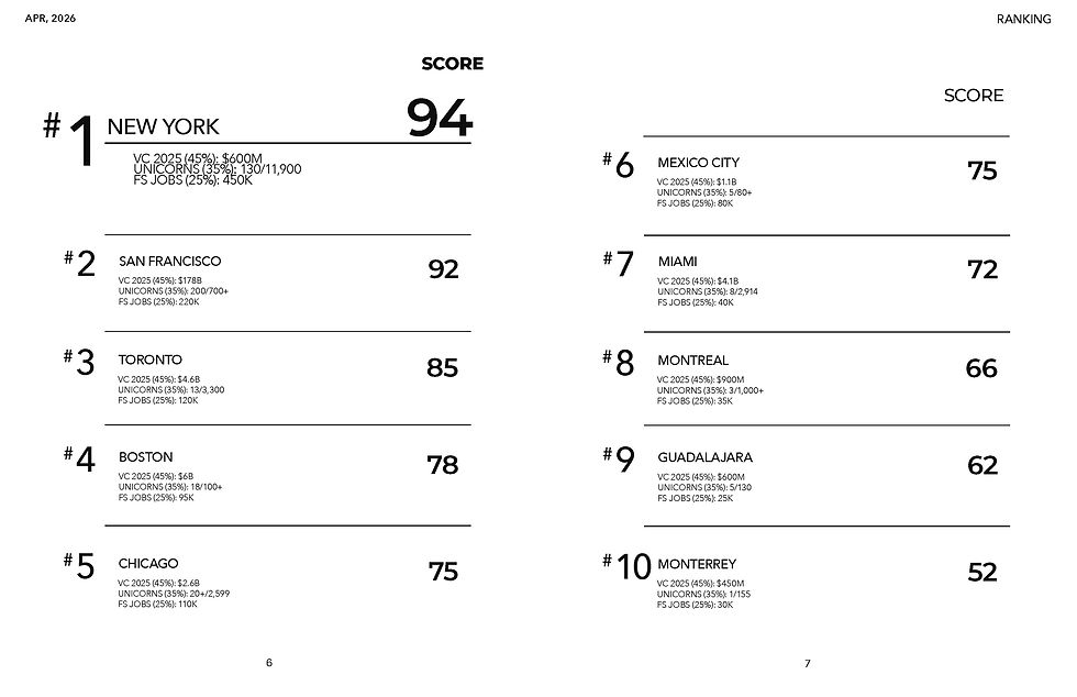 This transformation is concentrating in cities where capital, talent, and technology converge to form financial ecosystems with real systemic impact. Not all cities evolve equally, some are becoming core nodes in how financial flows are generated, scaled, and connected across North America.